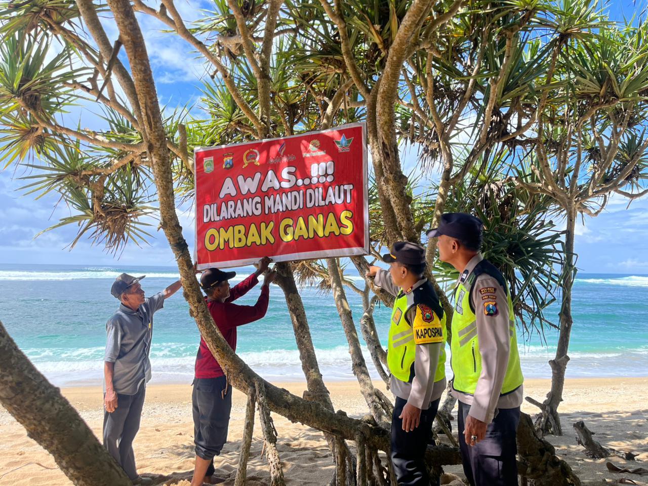 Selain itu, petugas bersama pengelola wisata juga memasang papan peringatan berisi imbauan keselamatan bagi para pengunjung, terutama terkait aktivitas di area pantai.